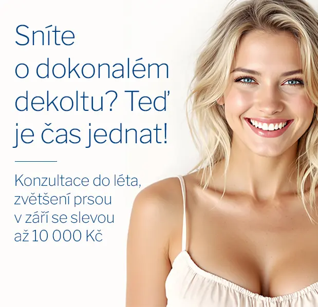 Absolvujte konzultaci do 15. 6. 2026 a získejte slevu až 10.000 Kč na operaci prsou s implantáty v září 2026.