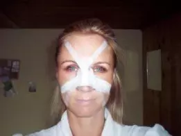 Takže dneska mi odstranili sádru a přelepili pouze takovými proužky. V tuto dobu už se dá jít do práce. Stále mám ale velice krvavé oči, prý to ale není bežné. Nos je ještě nateklý, ale už je vidět, jak je celý krásný :-) Ufikli mi totiž asi 4 mm!!! Ještě mi bylo doporučeno smrkat zatím jen lehce a stále čistit štětičkami. Já si každý večer zavádím štětičkami ten Miraclean, abych se rychleji hojila. Pan doktor mi ukázal, jak si mám nos masírovat. Jsou to vlastně jakési tlakové masáže, to by mělo zamezit tomu, aby ty jizvy zbytňovaly. Zabere to ale jen asi 10 vteřin 4x denně.